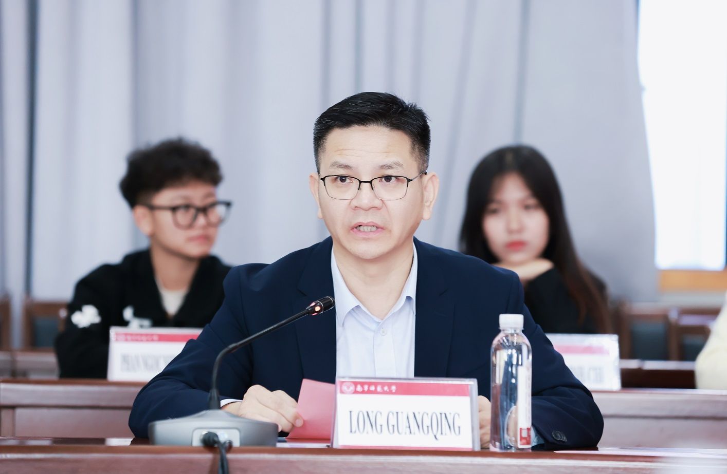 隆广庆校长对代表团的到访表示热烈欢迎,并简要介绍了学校近年来各项事业的发展概况,尤其在教育对外开放领域取得的新进展与突破。他强调,我校高度重视与越南的教育合作,已与越方多所学校、机构等建立了稳定合作关系。双方教育交流源远流长。近年我校招生培养的越南宣光籍留学生10多人。希望通过宣光省教育与培训厅与越南更多的学校、机构建立合作关系、开展务实合作。共同探索出具有特色的中越教育合作新模式,为两国教育事业的共同发展与人文交流注入新动能
