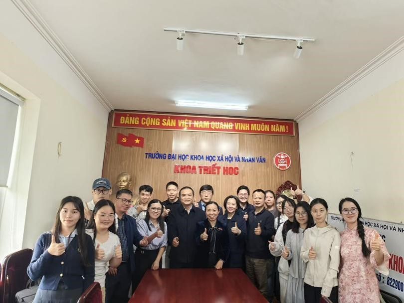 代表团访问越南河内国家大学所属人文社科大学哲学系,看望在此交流学习的我校马克思主义学院研究生