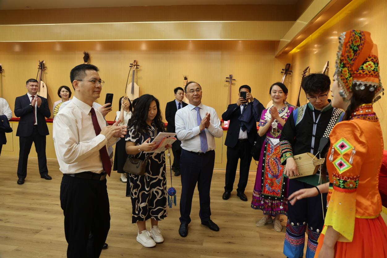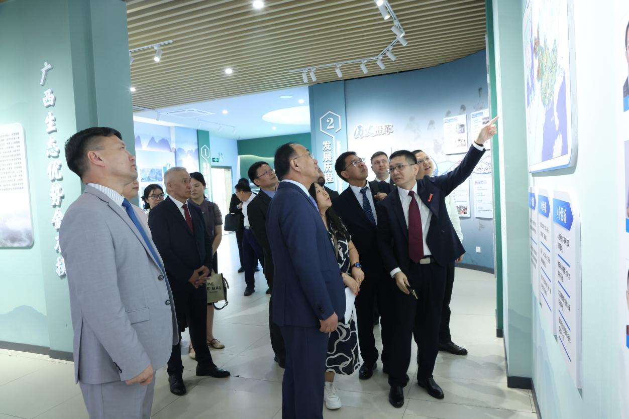 期间,哈萨克斯坦欧亚国立大学代表团一行在我校武鸣校区参观了地理与海洋研究院、环境与生命科学学院、自然资源与测绘学院、化学与材料学院、物流管理与工程学院、旅游与文化学院、音乐与舞蹈学院、体育与健康学院、物理与电子学院、图书馆、韦永丽速度研究与训练中心等教学科研平台。