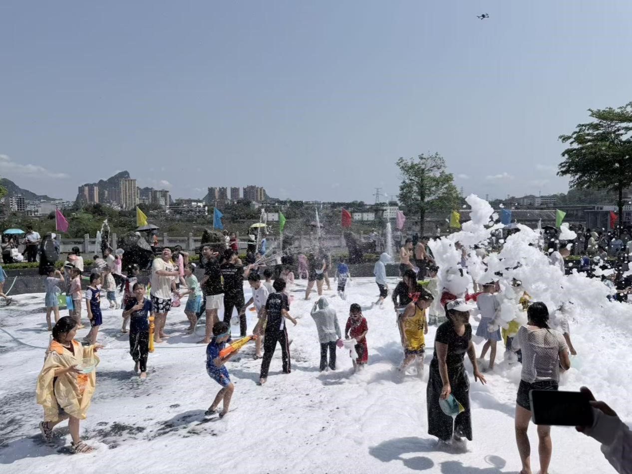 仪式结束后,欢快的泼水活动将现场气氛推向高潮,同学们在漫天水花中互致美好祝福。随后,中外师生们自由参观了奇石美食文化园、大化民族博物馆和达吽小镇等景点。从鬼斧神工的奇石藏品,到承载历史记忆的博物展厅,再到烟火气十足的达吽小镇,国际学生们用脚步丈量乡村,全方位、多角度地感知了大化的市井气息与人文风貌。